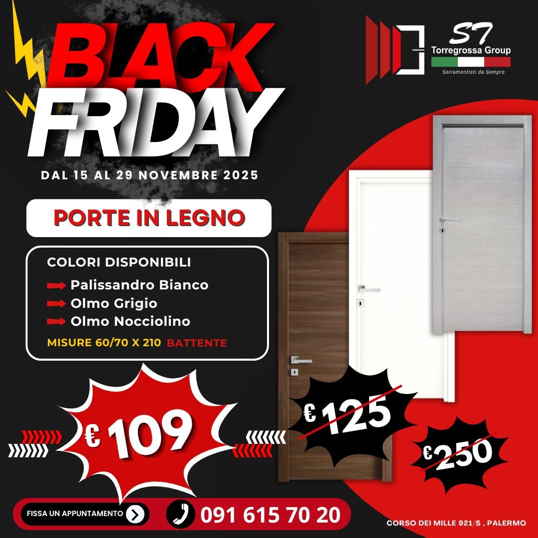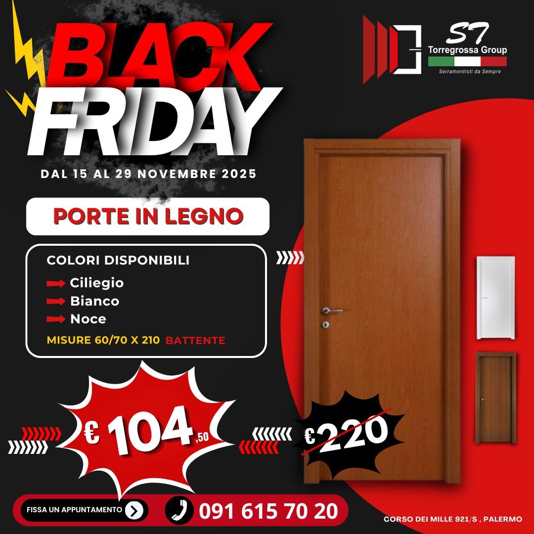 L’attesa è finita! Preparati a sconti incredibili: il Black Friday è qui!!! È il momento , sconti pazzi e super promozioni ti aspettano!” La caccia all’affare è ufficialmente aperta!” Fatti travolgere : il Black Friday è finalmente arrivato !!!!!!!!!!!PORTE IN LEGNOCOLORICILIEGIOBIANCONOCEMISURE CM 60 – 70 X 210 BATTENTE€. 104,50