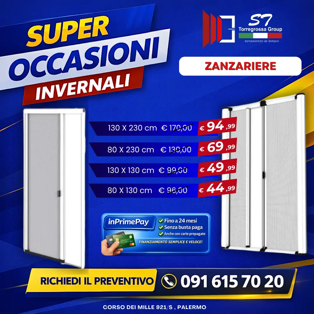 Zanzariere in super offerta – sconto 50%Zanzariere con sconto 50% Misure e prezzi: 130 × 230 cm → € 94,99 (anziché € 170) 80 × 230 cm → € 69,99 (anziché € 130) 130 × 130 cm → € 49,99 (anziché € 99) 80 × 130 cm → € 44,99 (anziché € 96) Cassettone da 32/40 […]