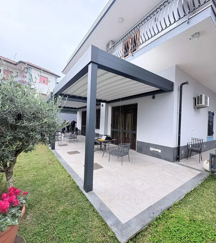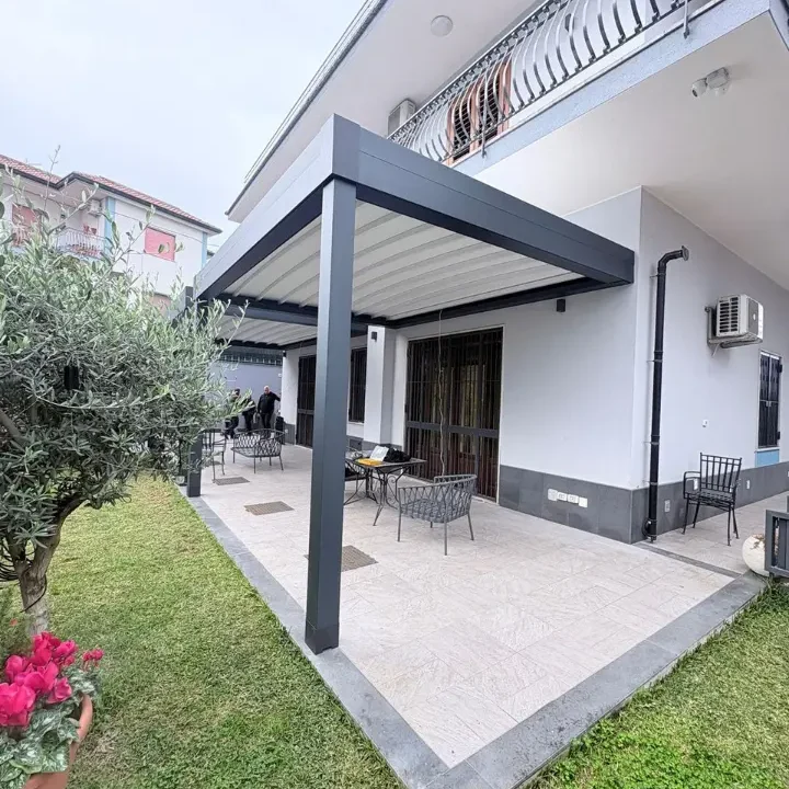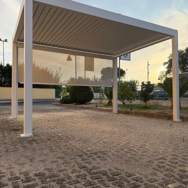 Questa soluzione è perfetta per chi desidera una copertura esterna moderna, capace di coniugare funzionalità ed estetica, adattandosi a contesti residenziali e commerciali.