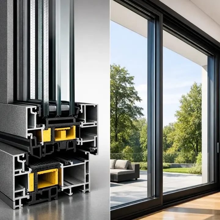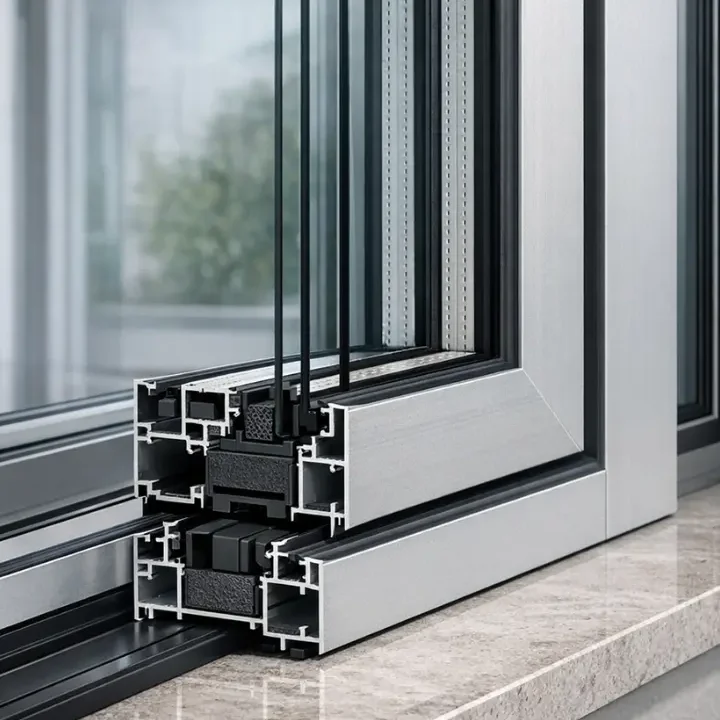 Sistema taglio termico da 48mm di sezione telaio , rappresenta un ottimo compromesso qualità prezzo per zone climatiche non particolarmente restrittive , A e B , sia sormonto che complanare con abbinamento ante fino a 93mm e alloggio per vetri fino a 42mm , valore di trasmittanza termica Uf : 3,33 W/m²K .